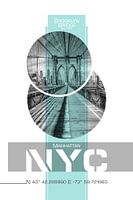 Klassiek stadsbeeld vanuit New York City in een modern design. Coördinaten en andere informatie worden samengevoegd met de Brooklyn Bridge om een minimalistische totaalindruk te creëren.