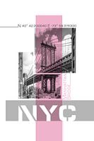 Klassiek stadsgezicht vanuit New York City in een modern design. Coördinaten en andere informatie gaan samen met de Manhattan Bridge om een minimalistische totaalindruk te creëren.