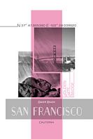Klassiek stadsgezicht vanuit San Francisco in een modern design. Coördinaten en andere informatie gaan samen met de Baker Beach en Golden Gate Bridge om een minimalistische totaalindruk te creëren.