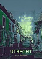 Illustratieve bewerking van een foto van de Korte Koestraat in Utrecht. Tijdens wandelingen door Utrecht kom ik geregeld leuke straatjes tegen die ik dan op de foto zet. Ik vond dit beeld van de smalle, gezellig Korte Koestraat mooi contrasteren met de het grote, moderne Tivoli Vredenburg, dat erachter opdoemt.