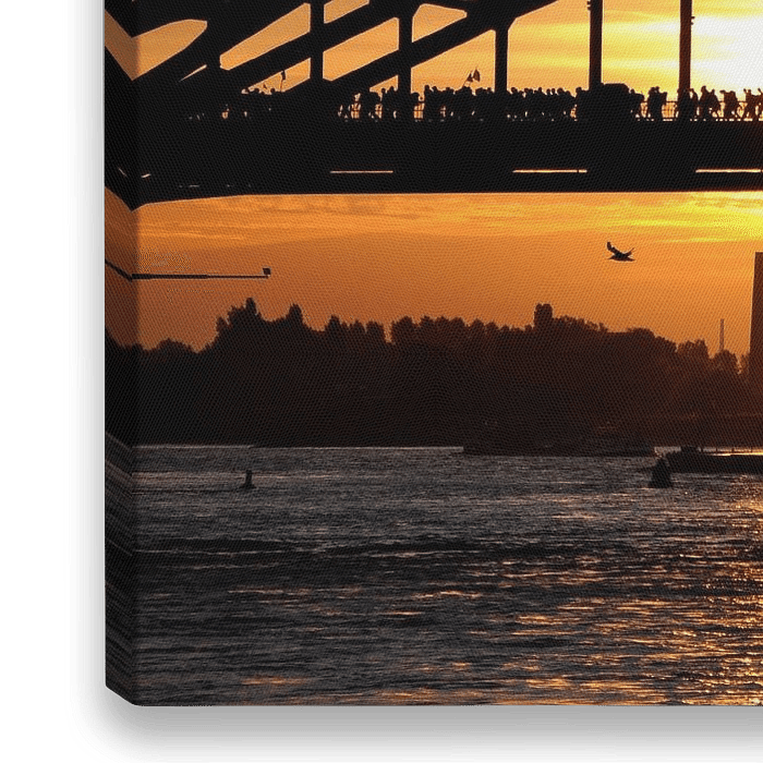 Ieder jaar lopen wandelaars in de vroege morgen rond 06.00 uur op de eerste dag van de Vierdaagse als de zon opkomt over de Waalbrug van Nijmegen.