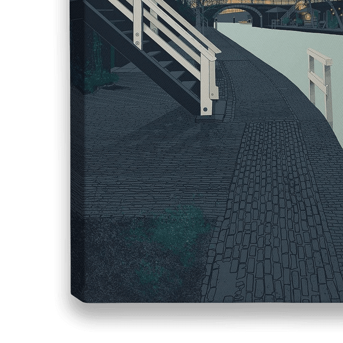 Deze illustratie toont de Zandbrug over de Oudegracht in Utrecht. Deze brug is bovendien vlak bij mijn huis dus ik heb een speciale band met deze buurt. Aangezien het herfst is en de dagen korter worden, loop ik tijdens "golden hour" van mijn werkplek naar huis aan het einde van mijn werkdag. De schemering valt in en de ondergaande zon…