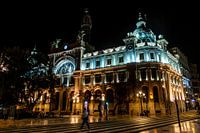 Postkantoor met verlichting in Valencia Spanje bij nacht