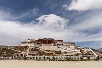 Het imposante Potala paleis in Lhasa, Tibet, met prachtige lucht gezien vanaf het grote plein. Het paleis is de voormalige residentie van de Dalai Lama.