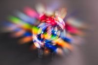 In kruislagen geordende potloden bekeken door een lensbal. Het beeld krijgt extra spanning door het samenvoegen van meerdere foto's.