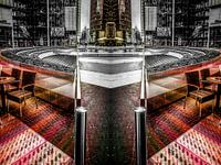 Fotokunst - Der Potsdamer Platz in Berlin von der Mitte an gespiegelt und coloriert.