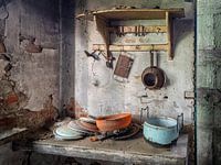 Herrie in de keuken, keukenspullen in een verlaten kasteel.