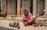 Pottenbakster aan het werk in Bhaktapur, Nepal.