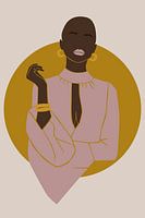 Afbeelding uit een serie van vijf met de titel "power woman". Iedere print is op zichzelf al sterk, maar er kunnen ook meerdere prints met elkaar gecombineerd worden. Illustratie in aardetinten.