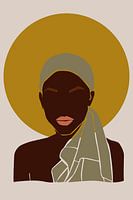 Afbeelding uit een serie van vijf met de titel "power woman". Iedere print is op zichzelf al sterk, maar er kunnen ook meerdere prints met elkaar gecombineerd worden. Illustratie in aardetinten.