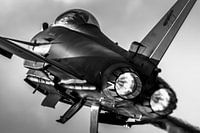 De Eurofighter Typhoon EF2000 start met de navebranders aan.