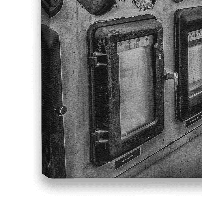 Bedieningspaneel in de oude leegstaande Electrabelcentrale in de buurt van Charleroi (Belgie)
