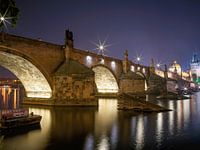 Koop de foto Praag - Karelsbrug bij nacht van t.ART op canvas, aluminium dibond, (ingelijste) fotoprint, behang en ArtFrame, op maat geprint in Fine-Art kwaliteit.