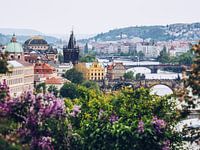 Een impressie van Praag, met uitzicht op de Vltava en de Oude Stad vanuit het Letná Park.