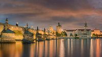 Uitzicht over de Vltava in de richting van de Oude Stad en de Karelsbrug van Praag.