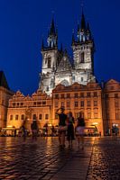 Het blauwe uurtje op de welbekende Markt van de Oude Stad van Praag, Tsjechië