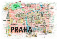 Praagse Tsjechische Republiek Geïllustreerde kaart met bezienswaardigheden en hoogtepunten