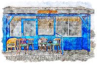 Over ‘Praathuis "'t is mae nae wie 't zeit" in Bruinisse (Zeeland) (aquarel)’ van Art by Jeronimo
