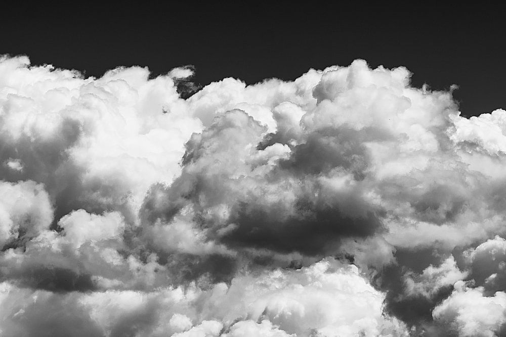 Veel mooie pluizige wolken boven de bergen van Zuid-Karinthië. Een mooie zwart-wit foto.
