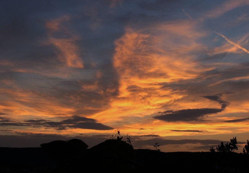 Een klein kampvuur onder vrienden in JenaWolfgang Unger Prachtig gekleurde bewolkte hemel bij zonsondergang in Thüringen voor de zomerWolfgang Unger