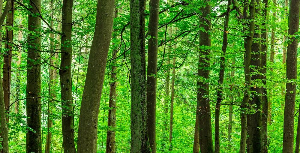 Prachtig groen bospanorama met weelderig bladerdek van loofbomen