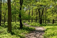 Het groen van de bomen in het bos met het licht van de zon erdoorheen geeft een prachtig schouwspel.