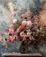 Prachtig stilleven van een boeket bloemen in pastelkleuren. Kies zelf het formaat en materiaal bij dit werk en maak er een echte blikvanger van voor jouw interieur.