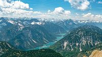 Koop de foto Prachtig uitzicht op de Plansee en de Thaneller van Leo Schindzielorz op canvas, aluminium dibond, (ingelijste) fotoprint, behang en ArtFrame, op maat geprint in Fine-Art kwaliteit.