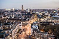 Dit prachtige panorama van Utrecht toont de moderne en de historische stad tijdens zonsondergang. Een unieke foto, een echte blikvanger.