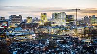 Dit prachtige panorama van Utrecht toont de moderne en de historische stad tijdens zonsondergang. Een unieke foto, een echte blikvanger.