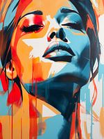 In dit betoverende vrouwenportret komt de schoonheid van de vrouw tot leven door een explosie van rijke kleuren en subtiele abstractie. De kunstenaar heeft met meesterlijk vakmanschap diverse tinten gebruikt om de nuances van emotie en individualiteit vast te leggen. Het portret straalt een tijdloze gratie uit, waarbij de kleuren samenkomen als een harmonieuze symfonie, en de lichte abstracte elementen voegen een vleugje mysterie toe aan het visuele meesterwerk.