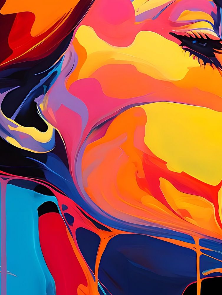 In dit betoverende vrouwenportret komt de schoonheid van de vrouw tot leven door een explosie van rijke kleuren en subtiele abstractie. De kunstenaar heeft met meesterlijk vakmanschap diverse tinten gebruikt om de nuances van emotie en individualiteit vast te leggen. Het portret straalt een tijdloze gratie uit, waarbij de kleuren samenkomen als een harmonieuze symfonie, en de lichte abstracte elementen voegen een vleugje mysterie toe aan het visuele meesterwerk.