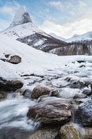 Een prachtig zicht op de indrukwekkende Stetind berg in Noorwegen. Deze opvallende berg heeft een hoogte van 1.392 meter en heeft de vorm van een kegel. De berg bevindt zich vijftien kilometer ten noordoosten van het Noorse dorp Kjøpsvik. De Stetind werd ook officieel uitgeroepen tot nationale berg van Noorwegen.