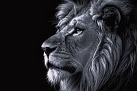 Dit prachtige zwart-wit portret toont de majestueuze kracht en schoonheid van een leeuw. De detaillering van de manen en de intense blik in de ogen geven dit kunstwerk een diep gevoel van kracht en waardigheid. De donkere achtergrond laat de leeuw op indrukwekkende wijze naar voren komen, wat zorgt voor een dramatisch contrast dat perfect past in een modern interieur. Of je nu een dierenliefhebber bent of simpelweg houdt van kunstwerken met een krachtige uitstraling, dit ontwerp is een prachtige toevoeging aan je collectie. Het past goed in woonkamers, kantoren en slaapkamers waar het een statement kan maken zonder de ruimte te overweldigen. Dit kunstwerk is een tijdloze uitdrukking van natuurpracht en de nobele geest van de koning der dieren.
