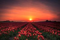 Tulpen velden bij Egmond aan den Hoef bij Zonsopkomst.