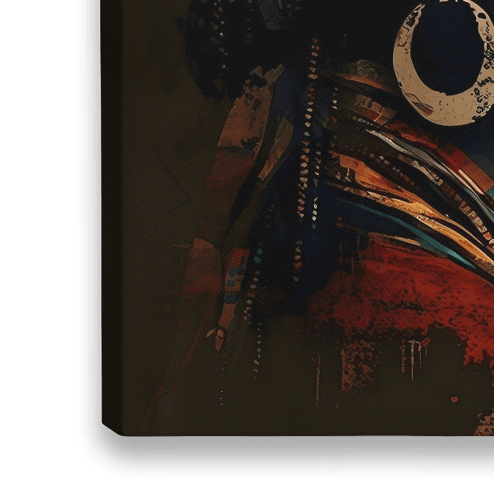 "Op het schilderij zien we een jong meisje van kleur. Haar gezicht en gewaad zijn versierd met speelse kleuren die getuigen van een rijke en grootse cultuur. De levendige tinten en gedetailleerde patronen weerspiegelen de vreugde en tradities die diepgeworteld zijn in haar erfgoed.