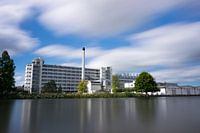De fabriek staat hier mooi in het zonlicht waardoor het lekker fris en licht eruit ziet. Ik heb de foto met lange sluitertijden gemaakt zodat de lijnen van het gebouw nog mooier eruit komen door de sluierende lijnen van de wolken.  Het heldere gebouw met mooie lijnen kan je op deze foto dus erg goed zien.