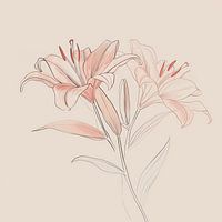 Neutraal, tijdloos en eigenzinnig. Een prachtige schets van 2 lelies tegen een subtiele achtergrond. Minimalistische kunst.