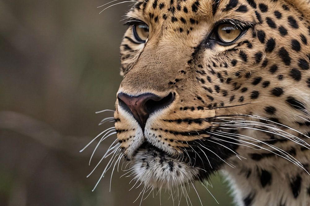 Deze prachtige close-up van een luipaard toont de elegante schoonheid van dit majestueuze dier. Met zijn opvallende vachtpatroon en intense blik, straalt het beeld kracht en gratie uit. Perfect voor liefhebbers van wilde dieren en natuur, dit ontwerp brengt een stukje wilde natuur in uw huis. De gedetailleerde weergave van de vacht en de scherpe focus op het gezicht van de luipaard maken het een indrukwekkend kunstwerk dat elke ruimte kan verfraaien. Ideaal voor slaapkamers of eetkamers, het voegt een vleugje exotische allure toe aan uw interieur.