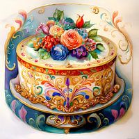 Feestelijk schilderij van een prachtige taart . Deel van een serie die in mijn portfolio is te vinden.
