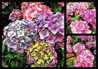 Gorgeous Hydrangeas Collage 2 bestaat uit een collage van drie prachtige fotokunstafbeeldingen van zachte, roze hortensia's. Hortensia's zijn een prachtige struik, en vertegenwoordigen een goede waarde in de tuin met spectaculaire bloemen in de vroege zomer zoals hier te zien is en dan mooie herfstkleur en bladvorm. Dit is een van een…