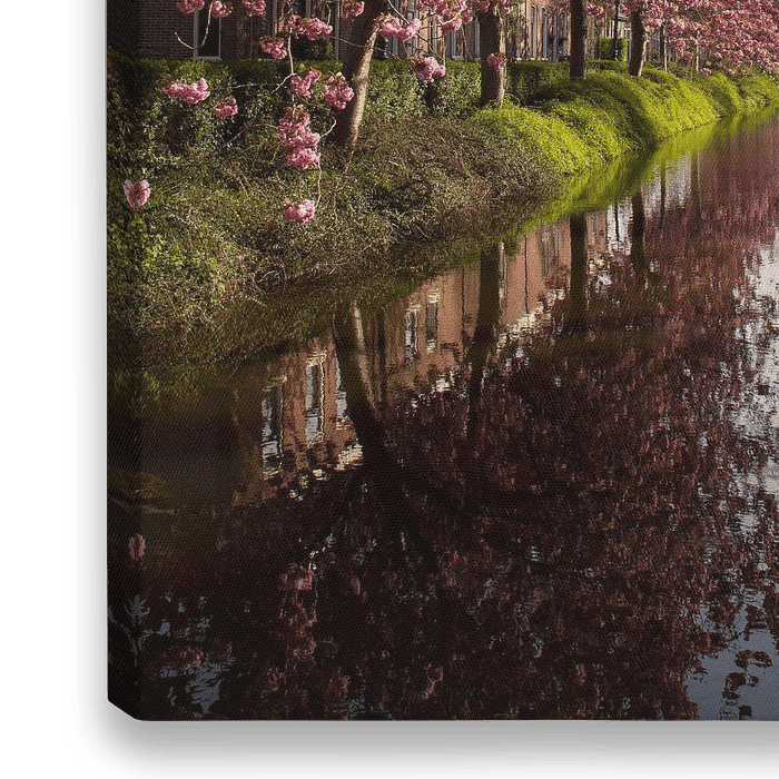 Deze rij met kersenbomen staat elk jaar weer prachtig in bloei. De spiegeling met het water maakt het plaatje helemaal af. De roze bloemen knallen altijd naar voren. Mooi langs een oud straatje met prachtige woningen. Sommige woningen uit 1888!