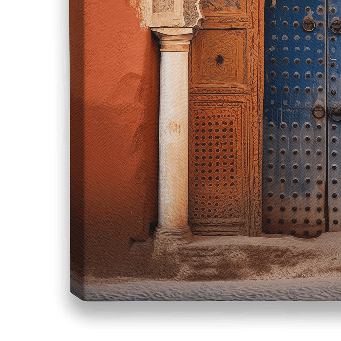 Prachtige poort met hoge deuren in Marrakech. Karakteristiek voor Marokko, digital art. Kies zelf het formaat en materiaal waarop je dit werk laat afdrukken.