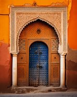 Prachtige poort met hoge deuren in Marrakech. Karakteristiek voor Marokko, digital art. Kies zelf het formaat en materiaal waarop je dit werk laat afdrukken.