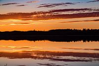 Prachtige reflectie rond middernacht in Zweden. In het Noorden van Zweden is het de gehele dag licht. Dit is een perfecte kans voor fotografen om mooie beelden te maken. Deze foto is gemaakt in de buurt van Luleå.