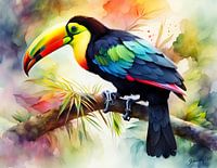 Prachtige vogels van de wereld - Keelbek toekan2 van Johannas Art Creations