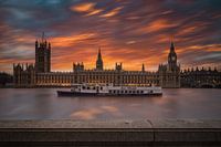 Prachtige wolkenlucht achter de Regeringsgebouwen en de Big Ben langs de Thames in Londen