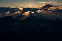 Zonsondergang in Axamer Lizum. De bergen hier lijken op de Italiaanse Dolomieten. De wolken lieten op deze avond prachten stralen door.