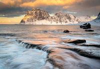 Over ‘Prachtige zonsondergang bij het strand van Uttakleiv op de Lofoten in Noorwegen.’ van Jos Pannekoek