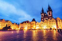 Blaue Stunde über Prag: Ein Blick über den Altstädter Ring auf die Teynkirche.